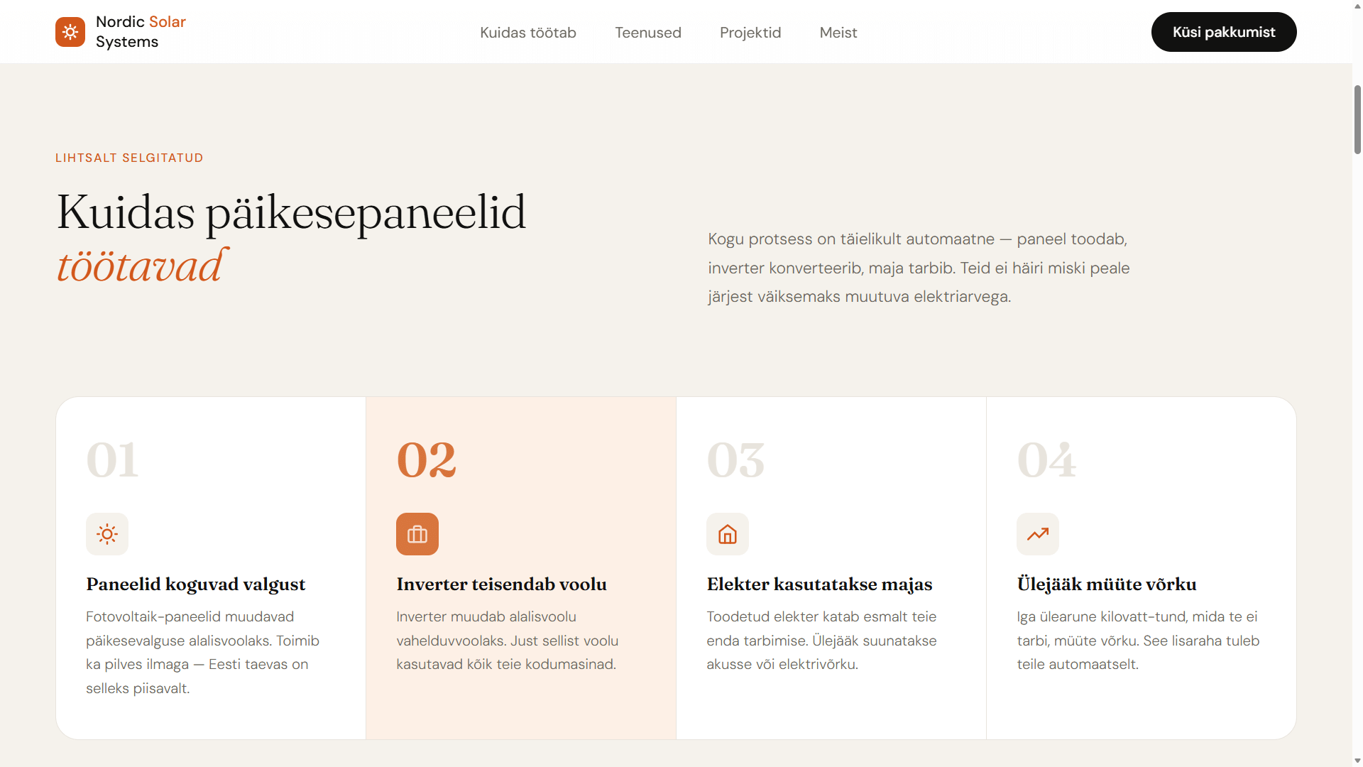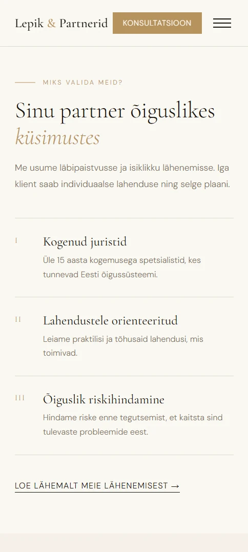 Selge hierarhia, tugevad pealkirjad, loogiline infojaotus ja läbimõeldud visuaalne rütm loovad usaldust ning suunavad kasutajaid tegutsema.